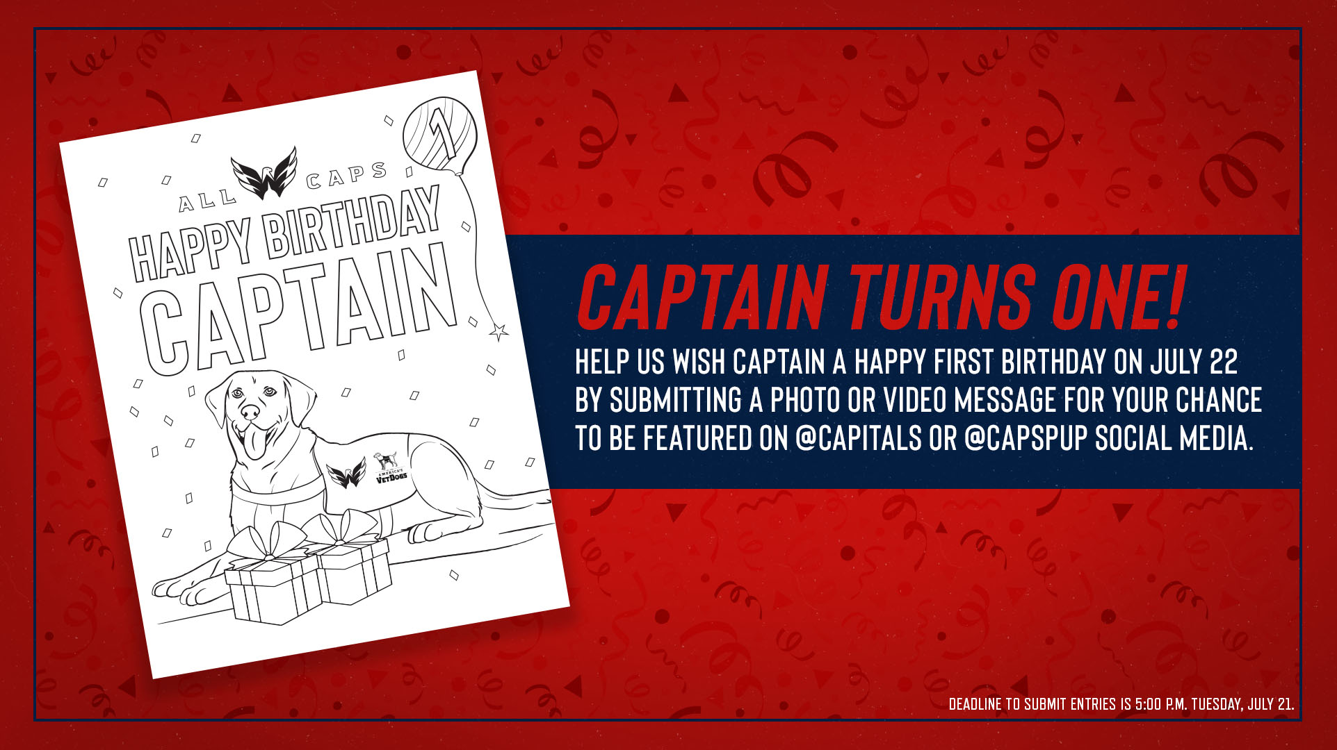Washington Capitals On Twitter Working On A Surprise For Captain And We Need Your Help Our Favorite Pup Turns One On July 22 Pull Out Your Caps Gear Dress Up Your
